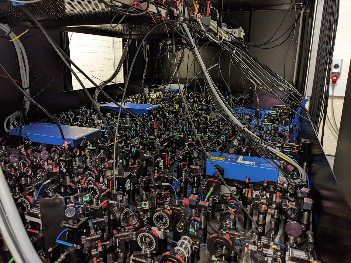 Our experiment is designed to study large arrays of molecules in periodic potentials, which have been proposed as a highly versatile platform for studying quantum matter. Thanks to the long-range dipole-dipole interactions between heteronuclear molecules and coherent control over rotational states, many different aspects of quantum many-body physics can be studied. Condensed matter theorists propose using molecules in experiments like ours to study topological superfluidity, Chern insulating phases and many-body localisation phenomena, for a review see e.g. Bohn, J. L., et.al Science 357.6355 (2017). Our experiment aims to advance the techniques used to make and manipulate molecules and work towards the study of novel quantum phenomena in a regime beyond the reach of classical computation.
