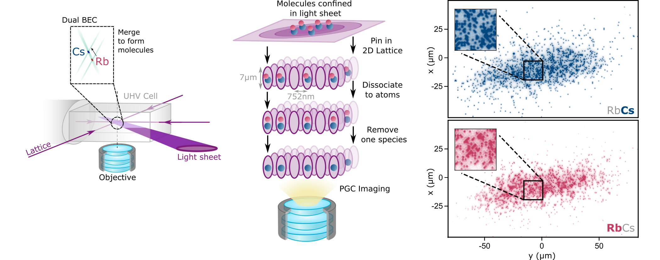 In our experiment we form ultracold molecules of 87Rb133Cs molecules from ultracold mixtures of the two species. Atoms are cooled to ultracold temperatures and sequentially loaded into a pair of dipole traps situated above a high resolution imaging system. We then merge these traps to form a mixture from which we associate molecules.
